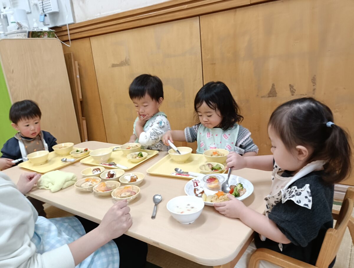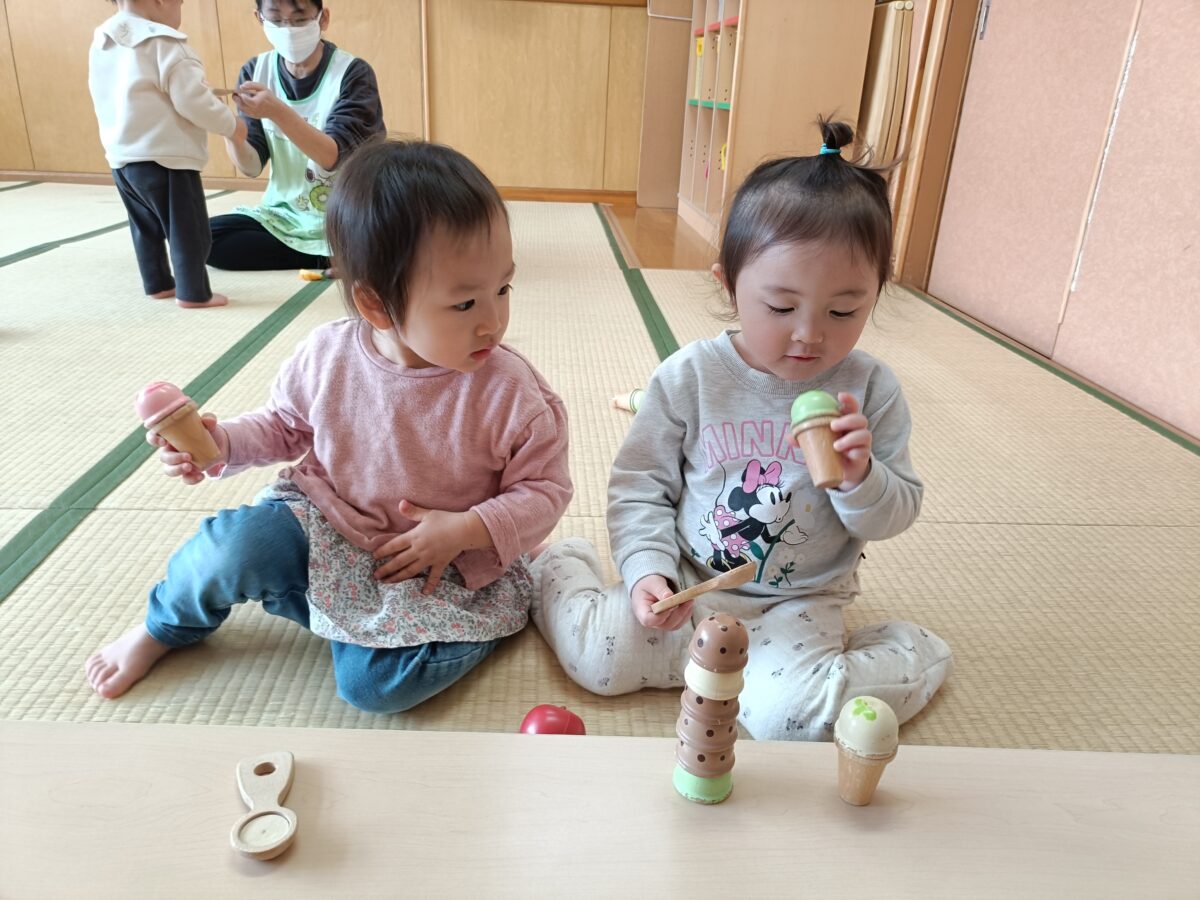 活動日記 DIARY 活動日記 1月 もも 2026年1月1日 お部屋や園庭でままごと遊びを楽しみました! 「かして!」「いいよ!」や、アイスを「どうぞ!」等、友だちとのやりとりが増え、一緒に遊ぶことを楽しんでいます。 ・ ・ ・ クリスマス会に参加しました! ひまわり組さんのキャンドルサービスを見たり、「あわてんぼうのサンタクロース」を歌いながら踊ったりすることを楽しみました!昼食では、カレーピラフやフルーツ盛りなどのご馳走がワンプレートで出てきて、食べる前からワクワク!!おかわりもして大満足な子どもたちでした! 新しい記事へ古い記事へ 活動日記一覧に戻る