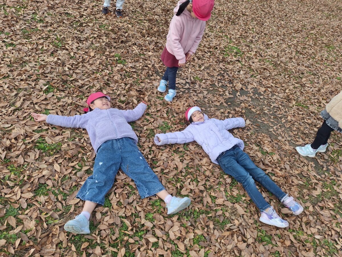 落ち葉シャワーにしたり、「じゅうたんみたい~」と