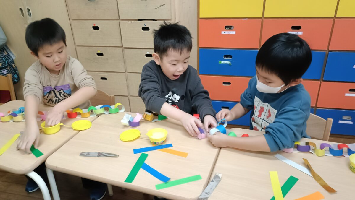 クリスマス製作は、子どもたちのリクエストの折り紙で作りました!