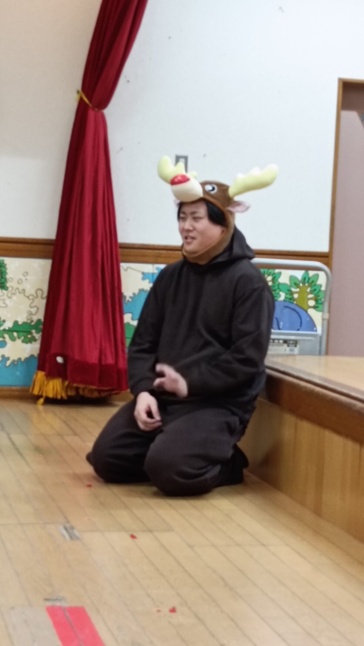 サンタさんとお揃いの帽子を被りお出迎え♪