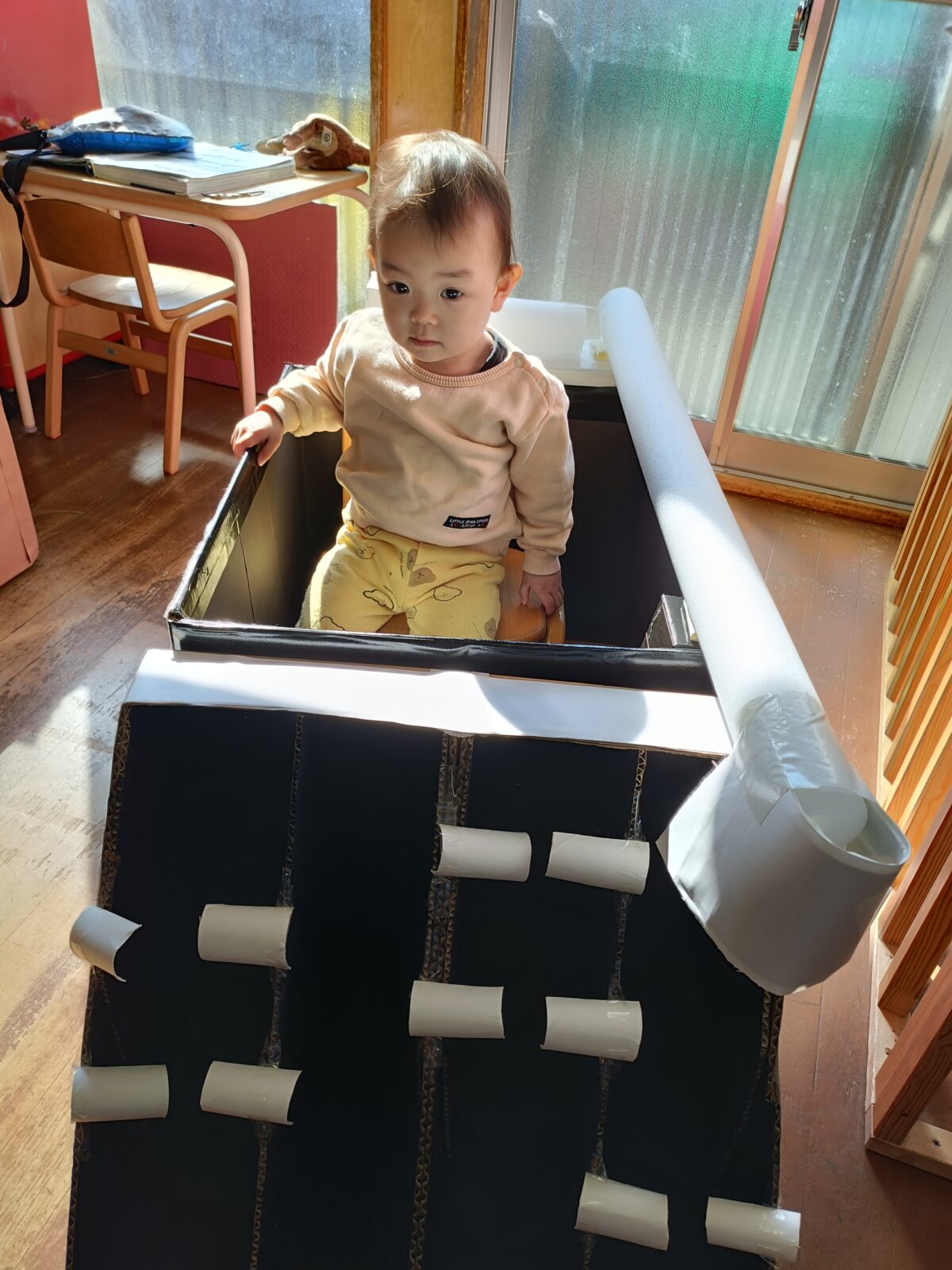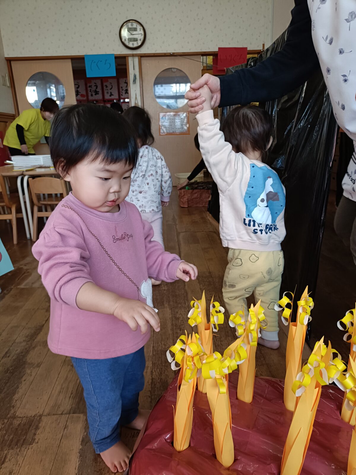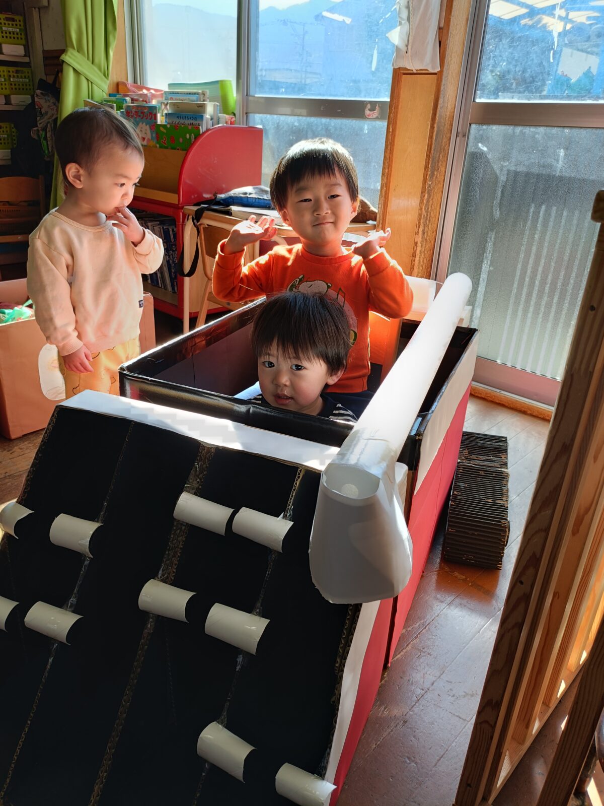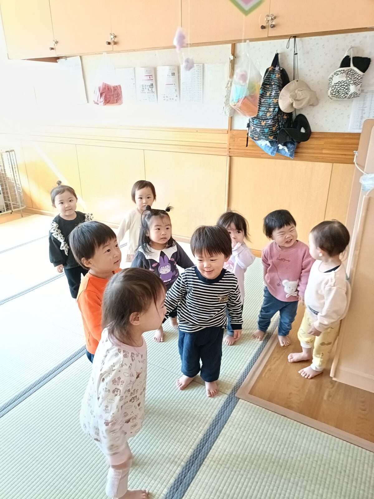 晴れた日に博物館までお散歩へ。すみれ組さんと駆けっこしたり、雪を触って遊びました。これから、たくさんお散歩行こうね!