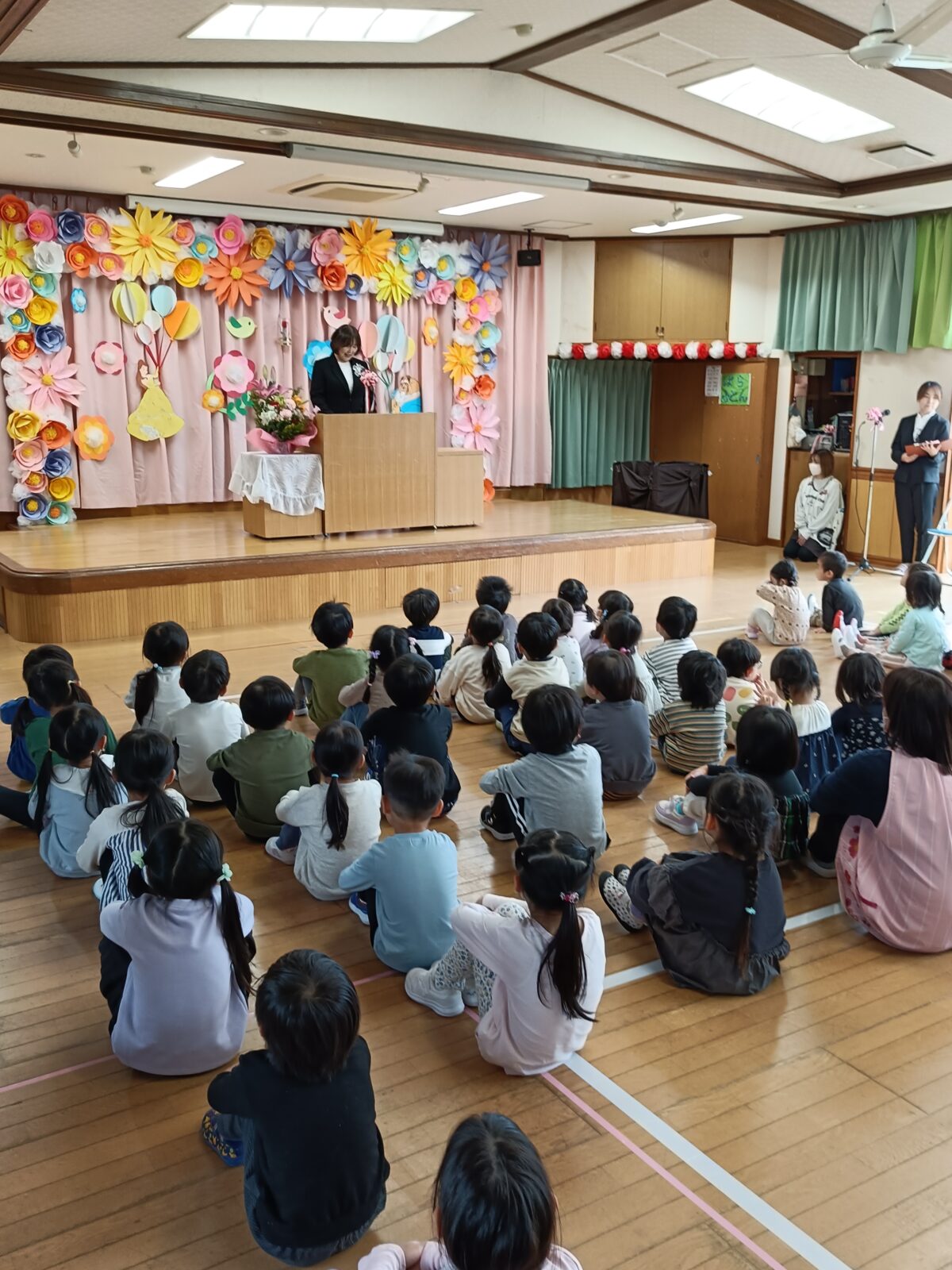 活動日記 DIARY 活動日記 入園・進級式 2026年4月1日 第80回 若松第三保育園 入園式が行われました。 ご入園・ご進級おめでとうございます! 新しいお友達を迎え、子供達の元気な声と笑顔あふれる一年の始まりを嬉しく思います。 式ではひまわり組による劇や歌で入園・進級をお祝いしました。 今年度も、安心して楽しく過ごせる毎日を大切にしながら、一人ひとりの成長を見守ってまいりますのでどうぞよろしくお願いいたします。 古い記事へ 活動日記一覧に戻る